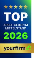 Vom Onlineportal Yourfirm sind wir in den letzten Jahren mehrfach als „Top-Arbeitgeber im Mittelstand“ ausgezeichnet worden. Der Grund hierfür liegt nicht nur in einem besonders freundlichen Arbeitsklima, sondern auch in der überdurchschnittlichen Vergütung unserer Mitarbeiter sowie der regelmäßigen Möglichkeit zur Weiterbildung und der Chance zur Übernahme von neuen Aufgaben und Verantwortungen im Unternehmen.