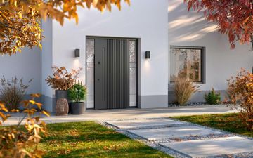 Die perfekte Ausrichtung von Türflügel und Seitenteil erzeugt einen imposanten, dennoch eleganten Eindruck von Prestige.